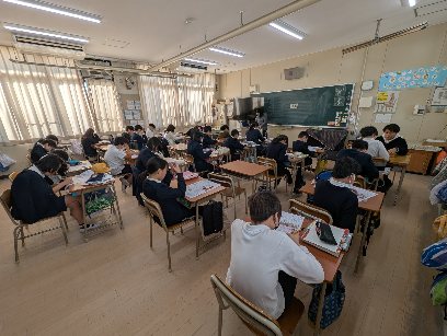 社会科の授業の様子です。江戸時代の文化についてのテストをしていました。休み明けすぐのテストでしたが、みんな集中して取り組んでいました。難しい内容でしたががんばっていました。