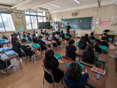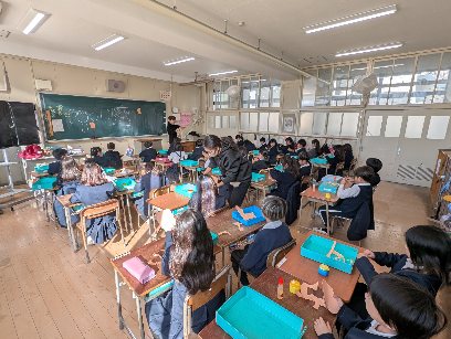 図画工作科の授業の様子です。ちぎり絵をするようです。先生の指示を聞きながら色画用紙を丁寧にちぎっていました。どんな作品になるのか楽しみですね。