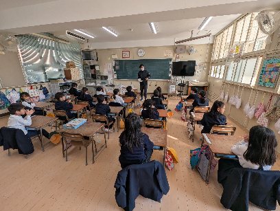 学級活動の授業の様子です。避難訓練の事前指導をしていました。まさかの時に自分の身を守るために、何をすべきかを真剣に考えていました。とても大切なことですね。