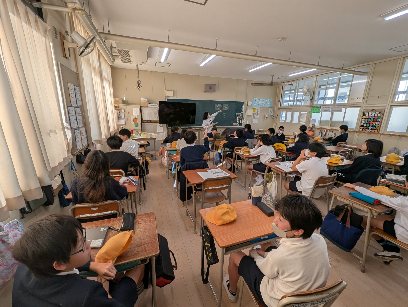 学級活動の授業の様子です。避難訓練の事前指導をしていました。地震に備えて気をつけることを考えていました。教室内が安全な場所になるように、窓ガラスや落下物等、危険なものはないかを点検していました。大切なことですね。この授業を活かして、お家の中も点検しましょう。