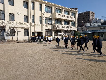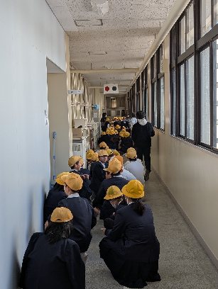 2校時に地震・津波に備えての避難訓練を行いました。昨夜も九州で大きな地震があり、南海トラフ一時臨時情報も出されました。すぐに解除されましたが、いつ大阪に大きな地震が起こってもおかしくない状況になってきています。地震の避難訓練はとても重要です。