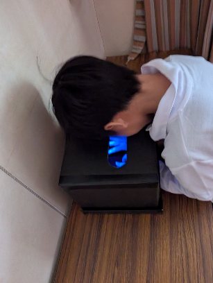発育測定と保健指導の様子です。身長・体重の測定の後、機械を使って自分の手の汚れを調べていました。1人ずつ測定器に手を差し込み、チェックしていました。十分に汚れが落ちていないときは、これからはもっと丁寧に磨きましょう。