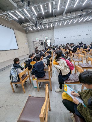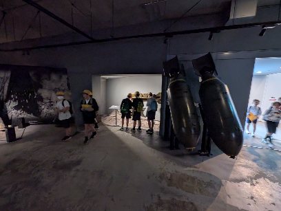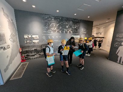 見学しながら、熱心にメモを取っています。講堂で、戦争の悲惨さを伝えるアニメも見ました。