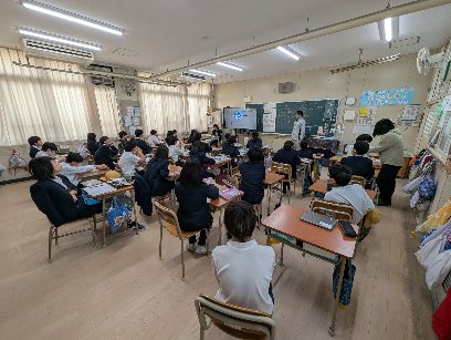理科の授業の様子です。てこの学習をしていました。NHKフォースクールの動画を見ながら、てこのつり合う時の重さについて考えていました。つり合う重さは、計算で求められますね。ややこしいけど理解するととっても楽しい学習です。