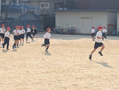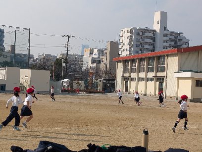 体育の授業の様子です。運動場で持久走をしていました。同じペースで長く走るための練習をしていました。冬のこの時期に持久力をつけて、基礎体力を伸ばしていきましょう。