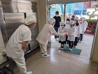 今日から給食週間が始まりました。いつもおいしい給食を作ってくださる調理員さん達に、2年生と5年生から感謝のメッセージが送られました。