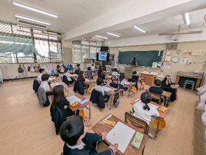図画工作科の授業の様子です。ふしぎな花を描いていました。パスを使って花びらを1枚ずつ、ていねいに塗っていきます。華麗な作品が完成するでしょう。楽しみですね。薄く塗っていくことがコツです。がんばりましょう。