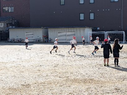 体育の授業の様子です。運動場で持久走をしていました。今日は2人一組になって記録をとっていました。一生懸命に走っていました。みんな目標を達成するためにがんばっていました。