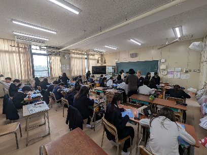 図画工作科の授業の様子です。版画をしていました。下絵を板に描き、彫刻刀を使って掘っていました。けがをしないように気をつけて彫り進めていきましょう。