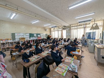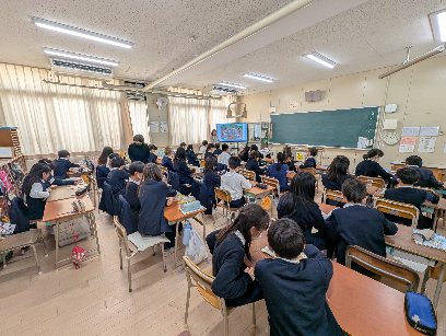 外国語活動の授業の様子です。校内の好きな教室について発表していました。C-NETの質問に的確に答えていました。皆さんはどこが好きですか?話し合ってみてください。
