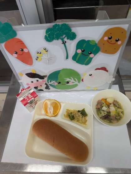 今日のメニューは、ポトフ・カレーソテー・いよかん・黒糖パン・牛乳です。