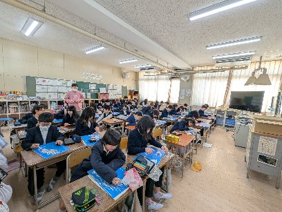 図画工作科の授業の様子です。木版画をしていました。みんな集中して彫り込んでいました。彫刻刀での作業は完成に近づいています。刷り上がるのが楽しみですね。