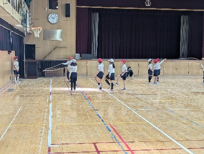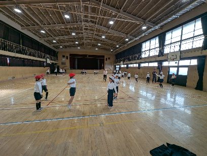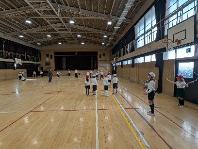 体育の授業の様子です。講堂で、縄跳び運動のテストをしていました。先生の前でいろいろな跳び方を披露していました。緊張せずに技を披露することができるといいですね。がんばりましょう。