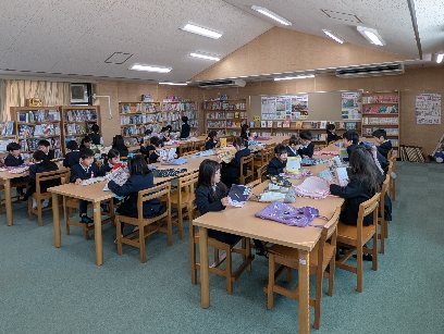 読書活動の様子です。図書館で自由読書をしていました。静かに集中して読んでいました。とても素晴らしいです。集中して長い時間読むことができれば、読解力は向上します。これからも続けましょう。