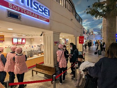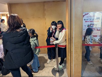 アクティビティの列に並んでいます。今日は来場者が多いです。