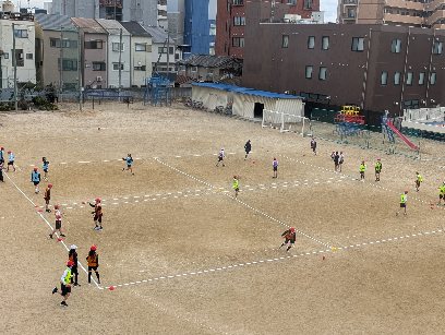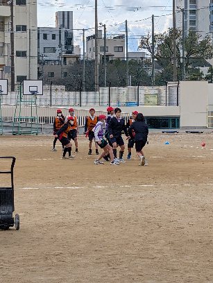体育の授業の様子です。運動場でタグラグビーをしていました。パスの練習の後に、作戦会議をして試合をしました。ランで行くのか、パスを投げるのか、ダミーを使うのか等、作戦が得点いつながります。チームワークが問われる楽しいスポーツです。