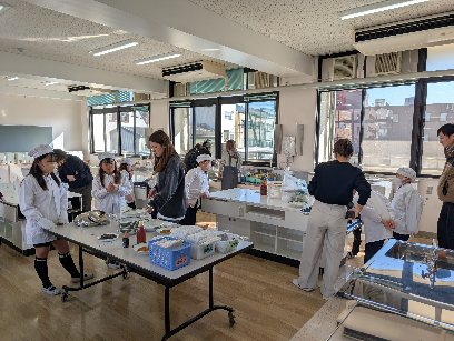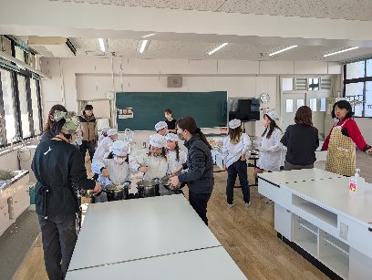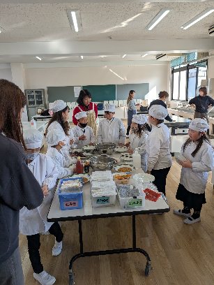 今日の活動は、家庭科室で調理実習を行いました。トッポギを作りました。ゆでたりソースやあんこ・きなこを用意したりしました。作っている徳の様子です。