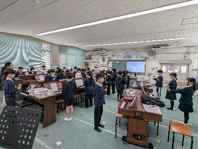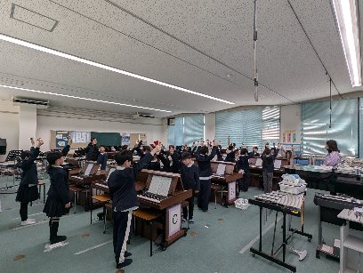 音楽の授業の様子です。ハンドベルの演奏の練習をしていました。きれいな音色が音楽室に響いていました。心にしみいる演奏でした。卒業お祝い集会で披露します。当日が楽しみです。