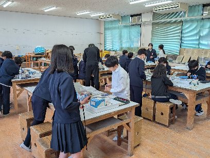 理科の授業の様子です。電磁石について考えていました。電磁石の強さの実験をしていました。電池の個数やコイルの巻き数を変えて比べていました。磁力を強くする方法を頭の中で整理しておきましょう。