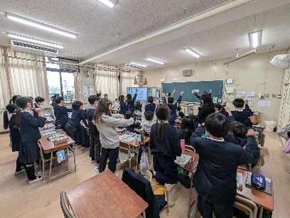 外国語活動の授業の様子です。1日の活動について考えていました。起きてから何をするかなどを発表していました。みんな積極的に会話を楽しみ、盛り上がっていました。