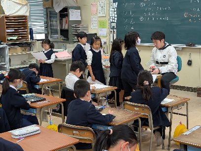 国語の授業の様子です。漢字のプリントをしていました。終わった人から点検をしていました。大きな丸をもらうには、丁寧に書くことが大切ですね。がんばりましょう。