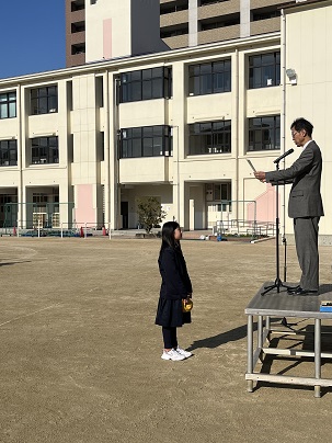 今週も子ども達の表彰を行いました。図画と読書感想文の表彰でした。これからもがんばった成果を、朝会で発表していきたいと思います。