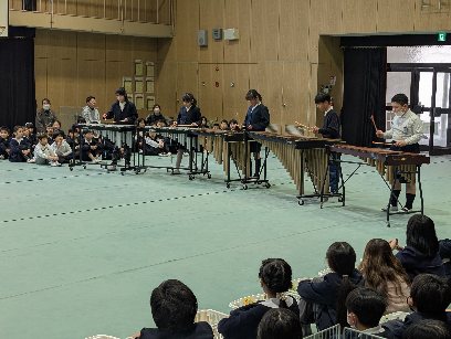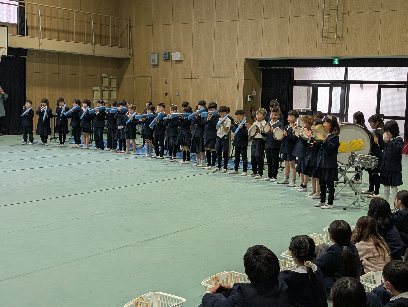 音楽クラブ・1年生・2年生のお祝いの出し物の様子です。すごく心がこもっていました。