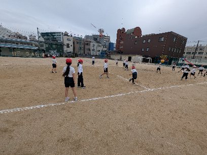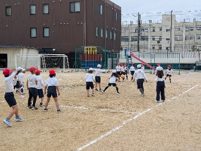 体育の授業の様子です。運動場でドッジボールをしていました。ボールを2つ使ってやっていました。気が抜けないので、みんな緊張感をもって試合をしていました。