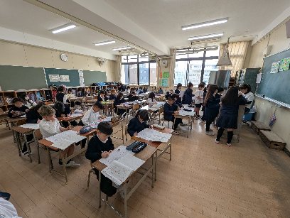 国語の授業の様子です。作文をしていました。2年生の感性で書く作文は今しか書けません。今の思いをしっかりと書き留めておきましょう。それを残しておいて、大人になったら読み返してみてください。あの2年生だったのときの気持ちを、思い出すかもしれません。
