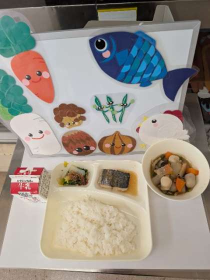 さごしとおろしじょうゆが合い、ご飯がすすみました。含め煮は里芋が入るとすごく高級な料理になりますね。菜の花は、ほろ苦く旬の味、子ども達には苦かったかな?感想を聞いてみたいです。