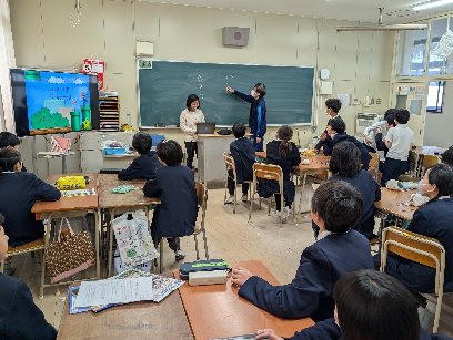 英語の授業の様子です。ゲーム形式で英語の質問に答えていました。グループ対抗でしていたので、正解するたびに歓声が上がっていました。楽しい授業になりました。