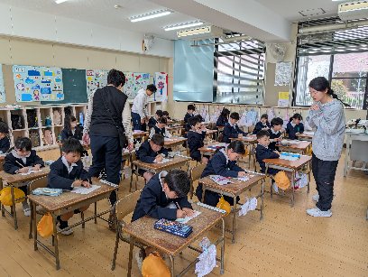 国語の授業の様子です。線を引く練習をしていました。プリントに引かれた線をなぞっていました。鉛筆の使い方の練習にもなります。スモールステップで、指導をしていきます。きれいな字が書けるように、毎日少しずつ取り組みましょう。