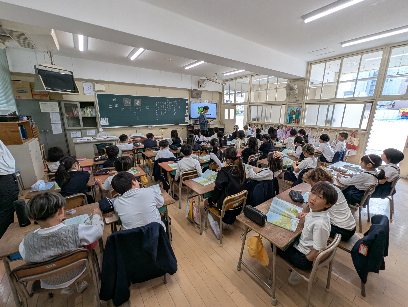 国語の授業の様子です。詩の学習をしていました。「春の子ども」です。この詩は、2011年から教科書に登場しています。フキノトウやつくしが出てきて、早春の自然を感じるいい詩です。大阪市内じゃ、なかなかお目にかかりませんが、実際に目で見て体験したいですね。