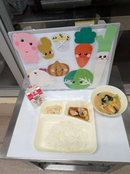 今日の献立は、焼き鳥・みそ汁・もやしのゆずの香あえ・ごはん・牛乳です。