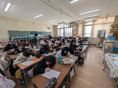 算数の授業の様子です。4年生で習った体積の練習問題をしていました。レディネステストです。単元に入る前に前に習ったことを振り返っていました。もし分からないところがあれば、しっかり復習しておきましょう。タブレット端末には、ドリル機能がありますからね。