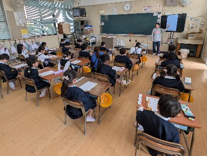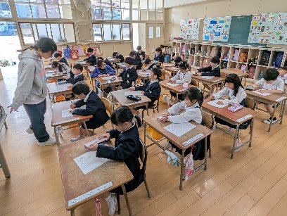 国語の授業の様子です。ひらがなの学習をしていました。今日は「つ」を書いていました。まずは字をなぞりながら書き、最後は、自分の力で書いていました。これからどんどん書くことになりますが、ていねいに書くことを忘れないでください。