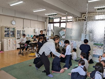 発育測定の様子です。保健室で身長・体重を調べていました。1年生の時に比べて大きくなったかな?