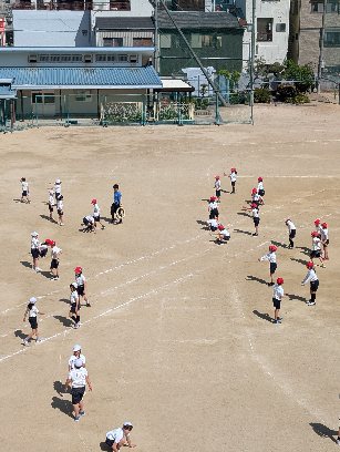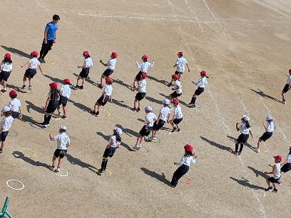 体育の授業の様子です。立ち幅跳びの練習や、敏捷性を高める運動をしていました。今が一番伸びる時期です。自分の運動能力を高めていくために、しっかり練習しましょう。