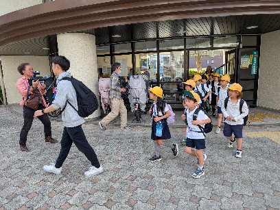 3.4年生が、万博会場の夢洲に出発しました。いい天気です。普段とは違う日常に触れて、楽しんできましょう。
