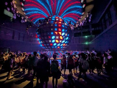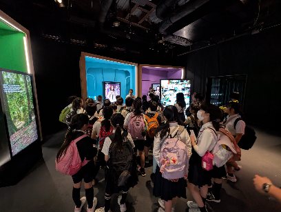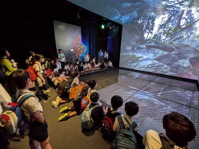 ルクセンブルクパビリオンの見学の様子です。なんと、小学校の団体見学の第一号出そうです。