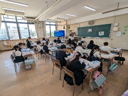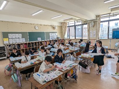図画工作科の授業の様子です。Tシャツのデザインを描いていました。パスで描いたデザインの上に、絵の具で着色していました。世界で1枚しかないオリジナルのTシャツです。せっかくなので持って帰ったら、お店でプリントをしてみてはどうでしょうか。