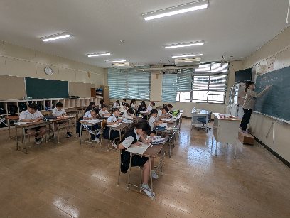 算数の授業の様子です。習熟度別少人数で学習をしていました。わり算の学習をしていました。式に当てはまる問題を考えていました。式に合う問題文を作成できることは、わり算の概念を理解するうえで重要です。うまく作ることができたかな?、