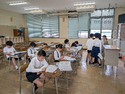算数の授業の様子です。習熟度別少人数で学習をしていました。グラフの練習問題をしていました。知識を定着させるには、多くの問題を解くことです。今はタブレット端末にドリル機能もありますので、自主的に学習を進めましょう。