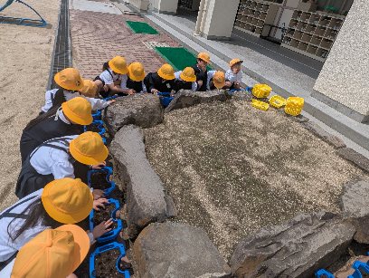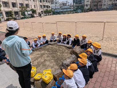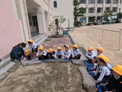 生活科の授業の様子です。朝顔の種を植えていました。皆さんも1年生のときに植えましたよね。夏休みには家で観察しましたね。