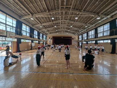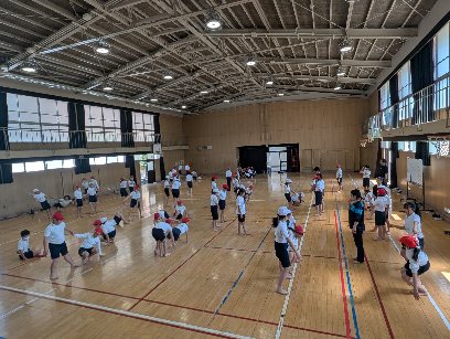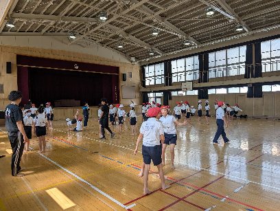 体育の授業の様子です。講堂で組み立て体操の練習をしていました。2人組でタイミングを合わせて技に挑戦していました。練習を重ねるごとに上手になっていきます。がんばりましょう。