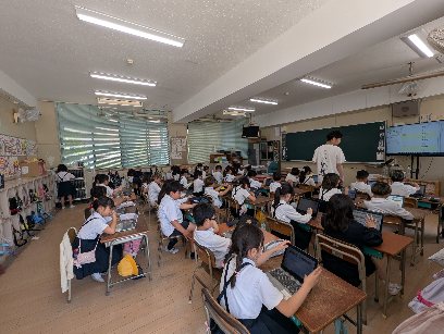 情報教育の学習の様子です。タブレット端末を使って、アンケートに答えていました。みんなそれぞれ淡々と当たり前のように入力していました。3年生でもICT機器は、生活の一部ですね。