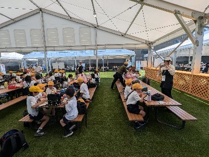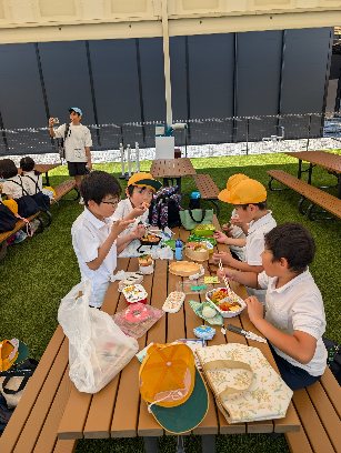 お弁当の様子です。1年生は、小学校で初めてのお弁当ですね。みんなで会食を楽しみましょう。