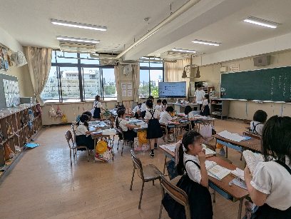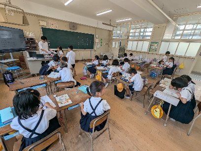 算数の授業の様子です。長さの練習プリントをしていました。習ったことを活用して実際に測っていましたね。知識として定着しているかを確認するために、練習問題は有効ですね。がんばりましょう。