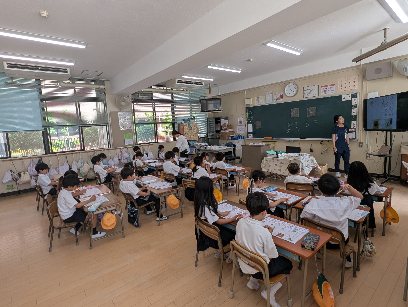国語の授業の様子です。ひらがなの学習をしていました。「も・の」をノートにていねいに書いていました。書き順の通りに何度も書いて、その仮名を使った言葉などを書いていきます。ていねいに書き順の通り書いていきましょう。