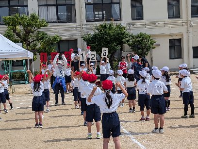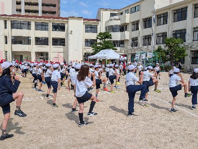 初めのストレッチストレッチ・得点発表・閉会式後の退場の様子です。最後までがんばっていました。当日、いい天気だといいですね。